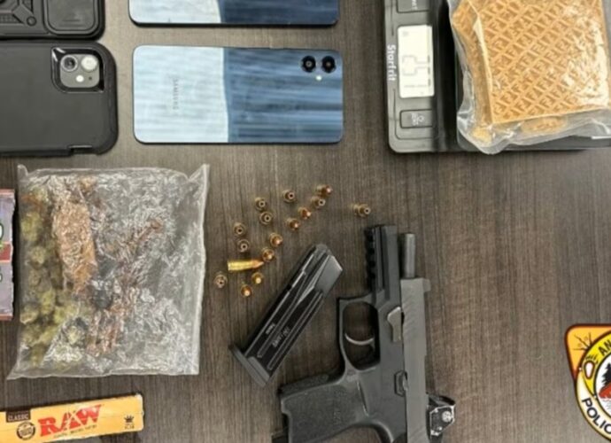 சோதனையின் பின், போலீசார் சந்தேகத்திற்கிடமான 250 கிராம் பெண்டனில், 33 கிராம் கஞ்சா, ஒரு நீட்டிக்கப்பட்ட மெகசீன் கொண்ட துப்பாக்கி மற்றும் 16 ரவுண்டுகள் குண்டுகளையும் பறிமுதல் செய்தனர்.
