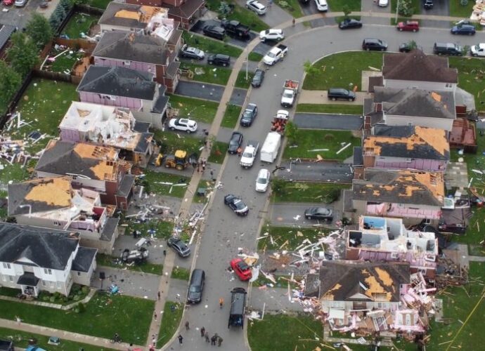 இதேவேளை, சூறாவளியால் சுமார் 25 க்கு மேற்பட்ட வீடுகள் சேதமடைந்துள்ள நிலையில் இடிபாடுகளுக்குக்குள் யாரேனும் சிக்கியுள்ளார்களா? என அறிந்துகொள்ள தேடுதல்கள் இடம்பெற்று வருவதாக நகர தீயணைப்பு மற்றும் அவசர கால மீட்புக் குழுவினர் அறிவித்துள்ளர்.