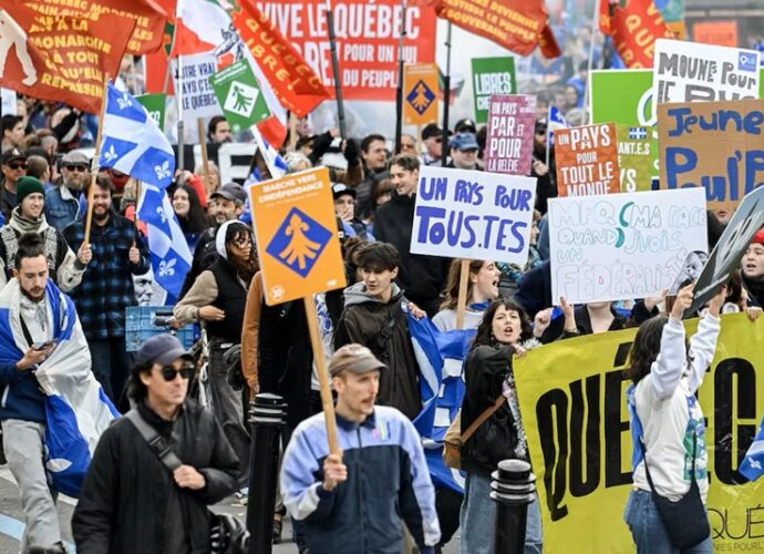 கனடாவின் கியுபெக் மாகாணத்தை தனி நாடாக பிரடகனம் செய்ய வேண்டுமென கோரிக்கை விடுக்கப்பட்டுள்ளது. மொன்ட்ரியால் நகரின் மையப்பகுதியில் சனிக்கிழமை நூற்றுக்கணக்கான மக்கள் தெருக்களில் பேரணியாக இறங்கி இந்தக் கோரிக்கையை முன்வைத்துள்ளனர்.