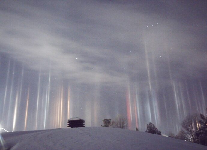 ஆனால் கனடாவில் இது போன்ற ‘ஒளி தூண்கள்’ பெரும்பாலும் குளிர் காலங்களில் அதிகமாக காணப்படுகின்றன.