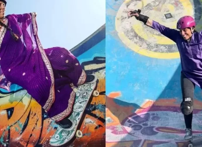 தெற்காசியாவை சேர்ந்த 40 வயதான தாய், புடவையில் ஸ்கேட்டிங் செய்வது, எல்லோராலும் எதுவேண்டுமானாலும் முடியும் என்பதற்கு உதாரணம்.