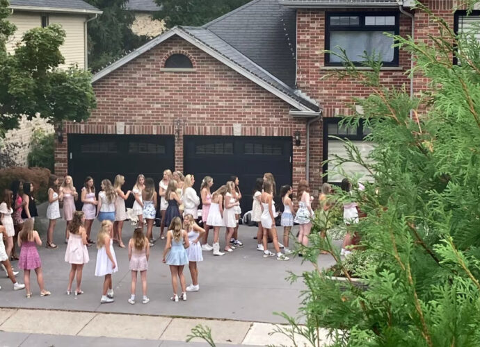 கனடாவின் ஒன்ராறியோ மாகாணத்தில், வீடொன்றிற்கு பேருந்துகளில் வரிசையாக இளம்பெண்கள் வந்திறங்குகிறார்கள்.
