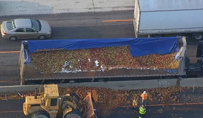 கனடாவில் டொரன்டோ பகுதியில் 401 நெடுஞ்சாலையில் இடம்பெற்ற வாகன விபத்து ஒன்றினால் அந்த வீதி முழுவதும் ஆப்பிள்கள் கொட்டிச் சிதறியுள்ளன.
