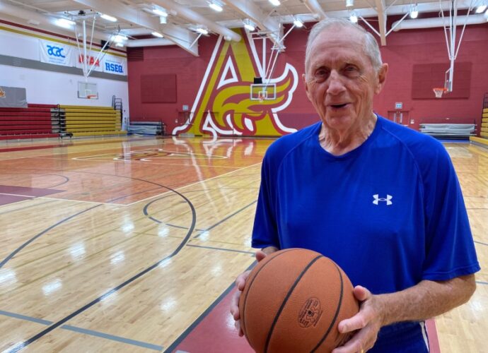 கனடாவின் நியூபிவுன்ஸ்விக் சக்வில் பகுதியில் 87 வயதான முதியவர் ஒருவர் கூடைப்பந்தாட்ட விளையாட்டில் திறமைகளை வெளிப்படுத்தி வருகின்றார்.