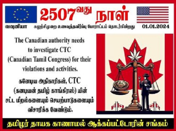 கனடாவில் CTCயின் சட்டவிரோத நடவடிக்கைகள் குறித்து விசாரணை நடத்த வேண்டும் என காணாமல் ஆக்கப்பட்ட தமிழர்களின் தாய்மார்கள் கனேடிய பிரமருக்கு கடிதம்
