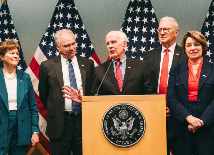 அமெரிக்க செனேட்டர்கள் குழு ஒன்று, நேற்று கனடா பிரதமரான மார்க் கார்னியை சந்தித்தது. அந்தக் குழுவில், ஜனநாயகக் கட்சி மற்றும் குடியரசுக் கட்சி ஆகிய அமெரிக்காவின் இரண்டு முக்கிய கட்சிகளைச் சேர்ந்த செனேட்டர்களும் இடம்பெற்றிருந்தனர்.