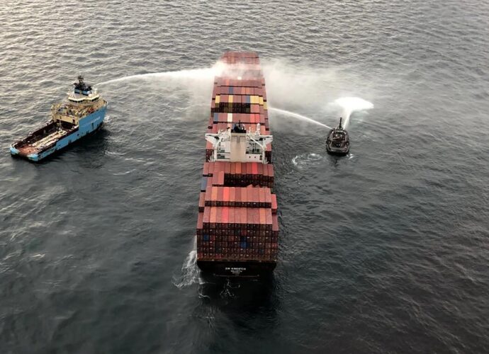 முதலில் 10 கொள்கலன்களுக்கு தீ பரவியது. பின்னர் 40 வரையான கொள்கலன்கள் தீப்பற்றி எரிந்தவாறு கடலுக்குள் விழுந்ததாக தெரிவிக்கப்பட்டுள்ளது. கொள்கலன்கள் கடலுக்குள் விழும் காட்சிகள் சா்வதேச ஊடகங்களில் வெளியாகியுள்ளன.