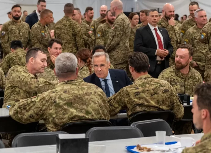 லாட்வியாவின் ஆதாசி இராணுவ தளத்தில் நிலை கொண்டுள்ள படையினரிடம் கார்னி பேசியுள்ளார்.