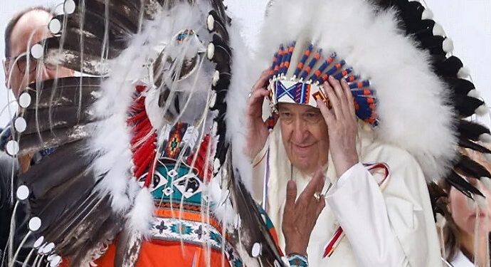 இதன்போது உரையாற்றிய அவர், ‘பூர்வகுடி மக்களுக்கு ஏராளமான கிறிஸ்தவர்களால் இழைக்கப்பட்ட கொடுமைகளுக்கு மிகுந்த தாழ்மையுடன் மன்னிப்பு கோருகிறேன்.