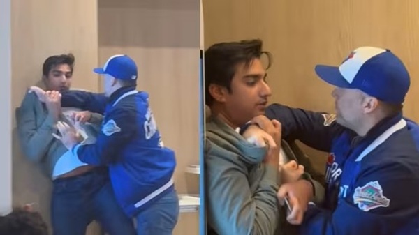 உடனே அவரைப் பிடித்துத் தள்ளிய அந்த கனேடியர், அவரது சட்டையைப் பிடித்து அவரை சுவருடன் சேர்த்துத் தள்ளிப் பிடித்துக் கொண்டு மிரட்ட, அந்த கஃபே ஊழியர் ஒருவர் தலையிட்டு தயவு செய்து வெளியே போங்கள் என அந்த கனேடியரை மன்றாடிக் கேட்டுக்கொள்ள, ஒருவழியாக வெளியே செல்கிறார் அந்த கனேடியர்.