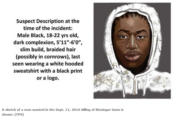 அத்துடன் அன்று துப்பாக்கிச் சூட்டுக்கு இலக்கான நபர் சென்றிருந்த பிறந்தநாள் வைபவத்தில் கலந்துகொண்டோரில் சிலரிடம் தகவல் சேகரித்ததன் அடிப்படையில், சந்தேக நபரின் மாதிரி வரைபடம் ஒன்றினை தயார் செய்துள்ளதாகவும், அதனைத் தற்போது வெளியிடுவதாகவும் தெரிவித்துள்ள காவல்துறையினர், சந்தேக நபர் 18இலிருந்து 23 வயதுக்கு உட்பட்ட, ஐந்து அடி 11 அங்குலத்திலிருந்து ஆறு அடி வரையில் உயரமுள்ள, மெல்லிய உடல்வாகு கொண்ட, கறுப்பு இன ஆண் என்று அடையாளம் வெளியிட்டுள்ளனர்.