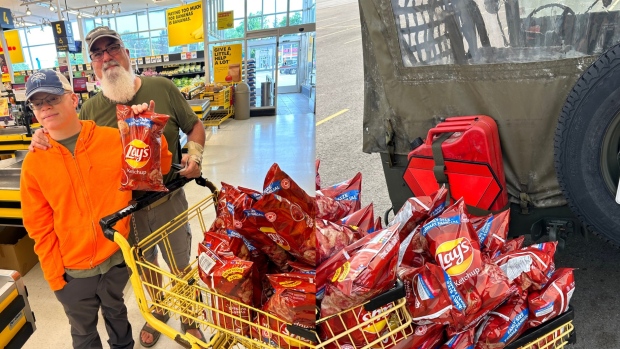 பிரபலமான உருளைக் கிழங்கு சிப்ஸ் வகையொன்றை கொள்வனவு செய்வதற்காக தந்தையும் மகனும் ஜீப் வண்டியில் கனடா வந்துள்ளனர்.