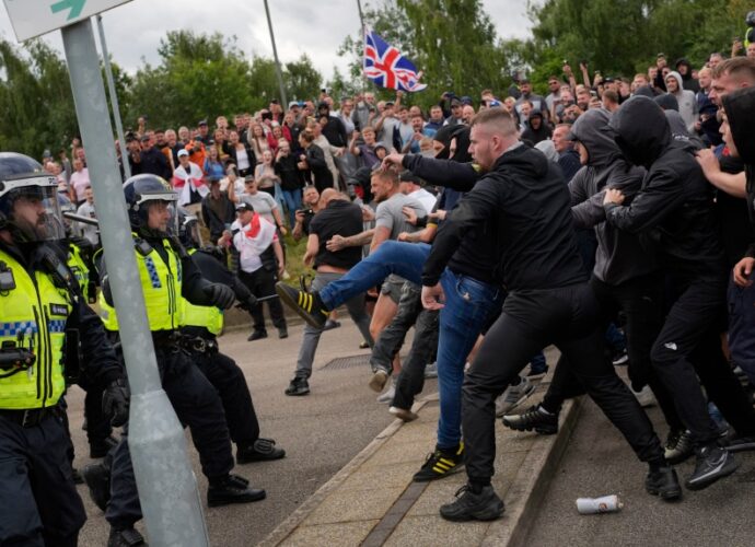 பிரித்தானியாவில் இடம்பெற்று வரும் போராட்டங்கள் மற்றும் வன்முறைகள் தொடர்பில் இவ்வாறு அச்சுறுத்தல் விடுக்கப்பட்டுள்ளது.