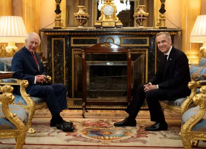 ஆம், கனடாவின் புதிய பிரதமரான மார்க் கார்னி மன்னர் சார்லசை பக்கிங்காம் அரண்மனையில் சந்திக்கும்போது, மன்னர் சார்லஸ் சிவப்பு நிற கழுத்துப்பட்டை (tie) அணிந்திருந்தார்.