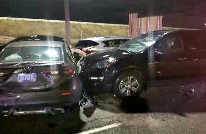 இந்த விபத்தில் குறைந்தது ஆறு வாகனங்கள் தொடர்புபட்டுள்ளதாக ஒன்ராறியோ மாநிலப் பொலிஸார் தெரிவித்துள்ளனர்.