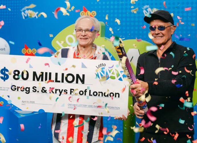 கனடாவின் ஒன்றாரியோ லண்டனில், முப்பது ஆண்டுகளுக்கு மேலாகப் பழகிய இரு நண்பர்களுக்கு ஒரு மெகா ஜாக்பாட் பரிசு கிடைக்கப் பெற்றமை லண்டன் நகரையே ஆச்சரியத்தில் ஆழ்த்தியுள்ளது.