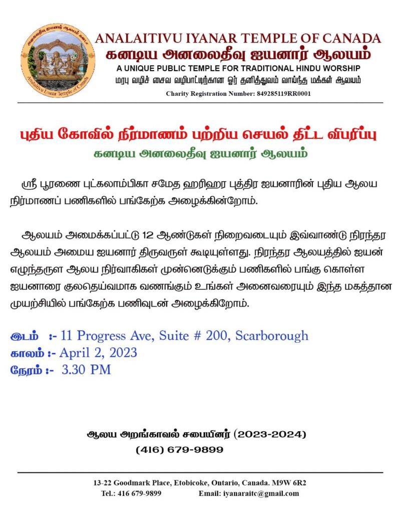 If you have an event you’d like us to post, a suggestion on how we can make our calendar better, or any other question, please email us at info(at)torontotamil.com. You can also complete our online event submission form. We look forward to hearing from you!