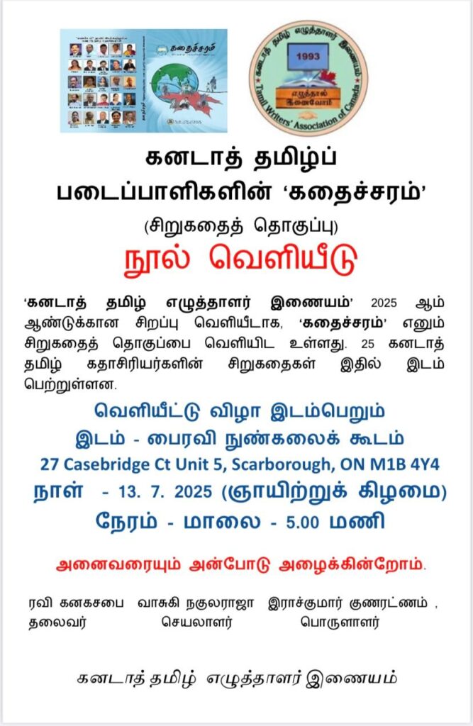 If you have an event you’d like us to post, a suggestion on how we can make our calendar better, or any other question, please email us at info(at)torontotamil.com. You can also complete our online event submission form. We look forward to hearing from you!