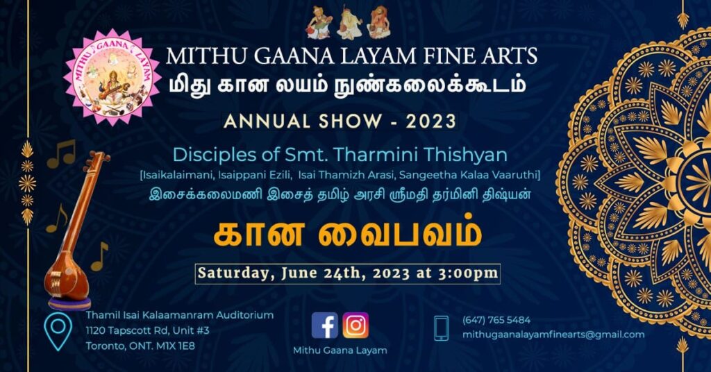 If you have an event you’d like us to post, a suggestion on how we can make our calendar better, or any other question, please email us at info(at)torontotamil.com. You can also complete our online event submission form. We look forward to hearing from you!