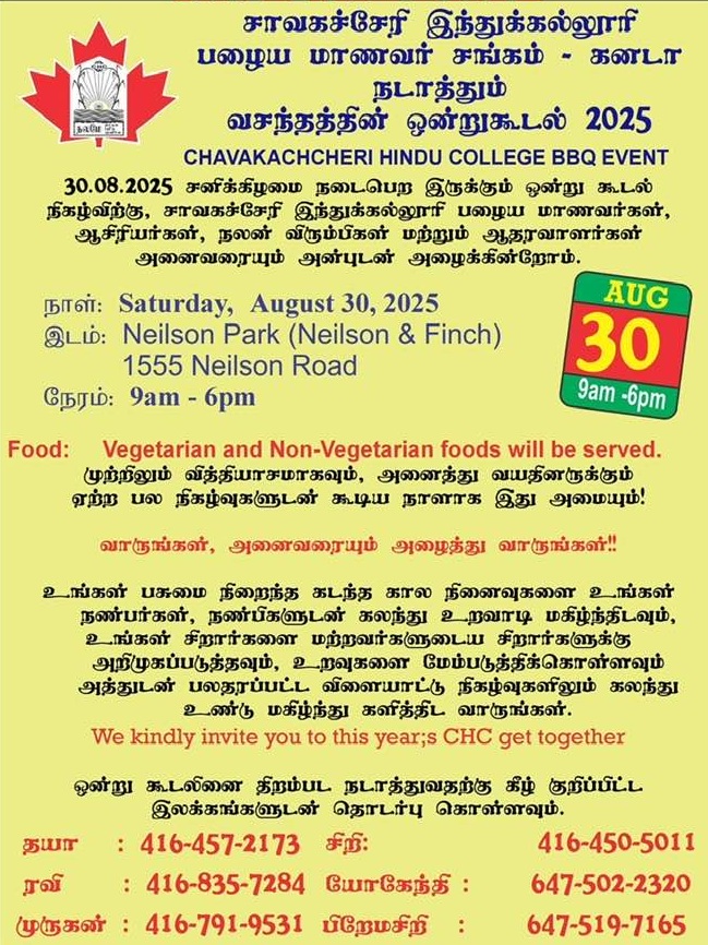 சாவகச்சேரி இந்துக்கல்லூரி OSA Canada – ஒன்றுகூடல் 2025