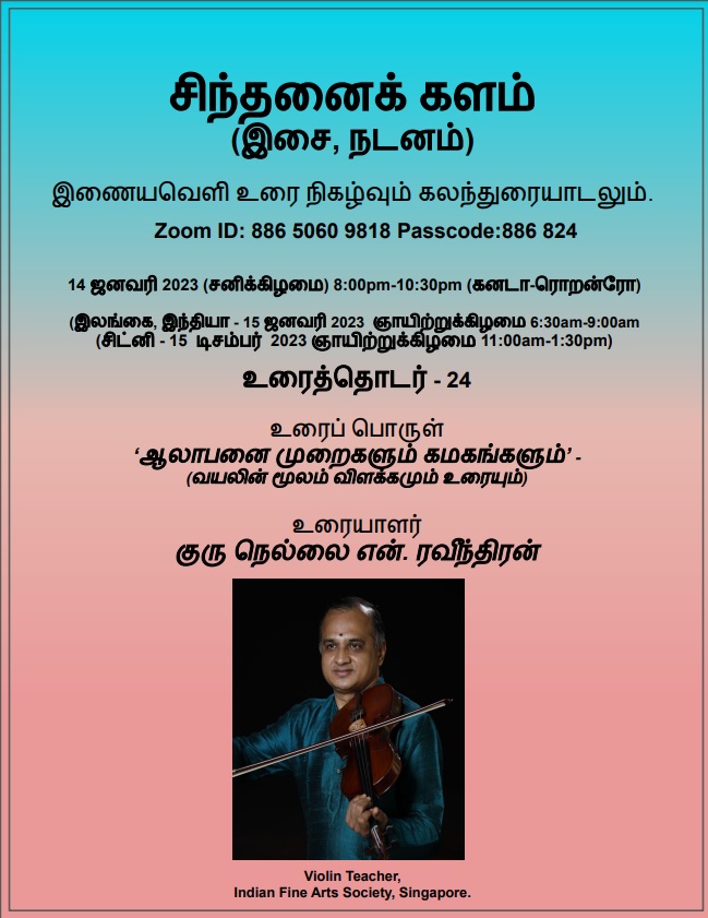 Topic: ‘ஆலாபனை முறைகளும் கமகங்களும்’ – (வயலின் மூலம் விளக்கமும் உரையும்)