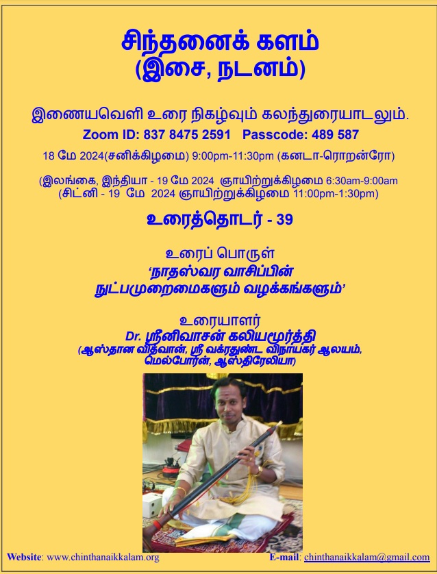 Topic: ‘நாதஸ்வர வாசிப்பின் நுட்பமுறைமைகளும் வழக்கங்களும்’