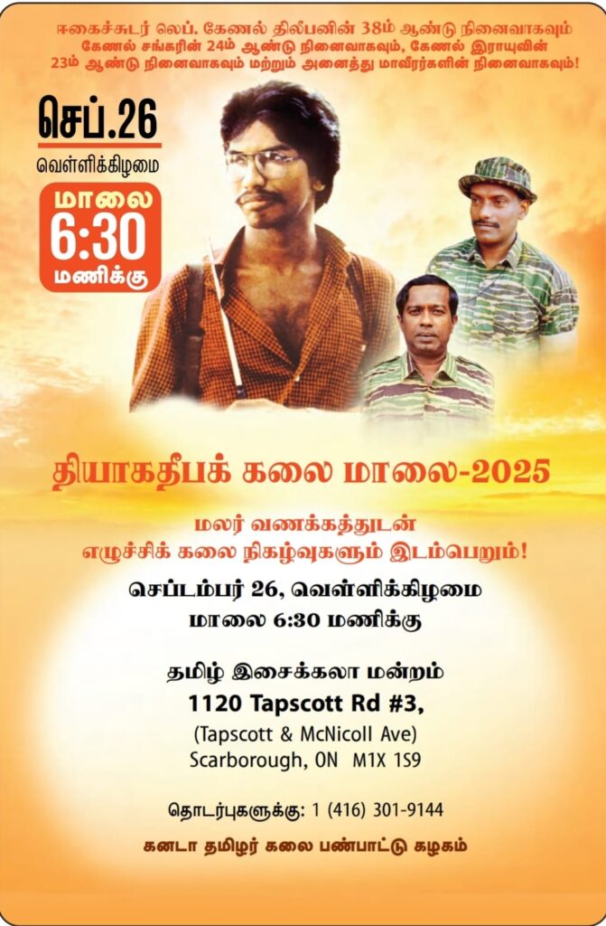 If you have an event you’d like us to post, a suggestion on how we can make our calendar better, or any other question, please email us at info(at)torontotamil.com. You can also complete our online event submission form. We look forward to hearing from you!