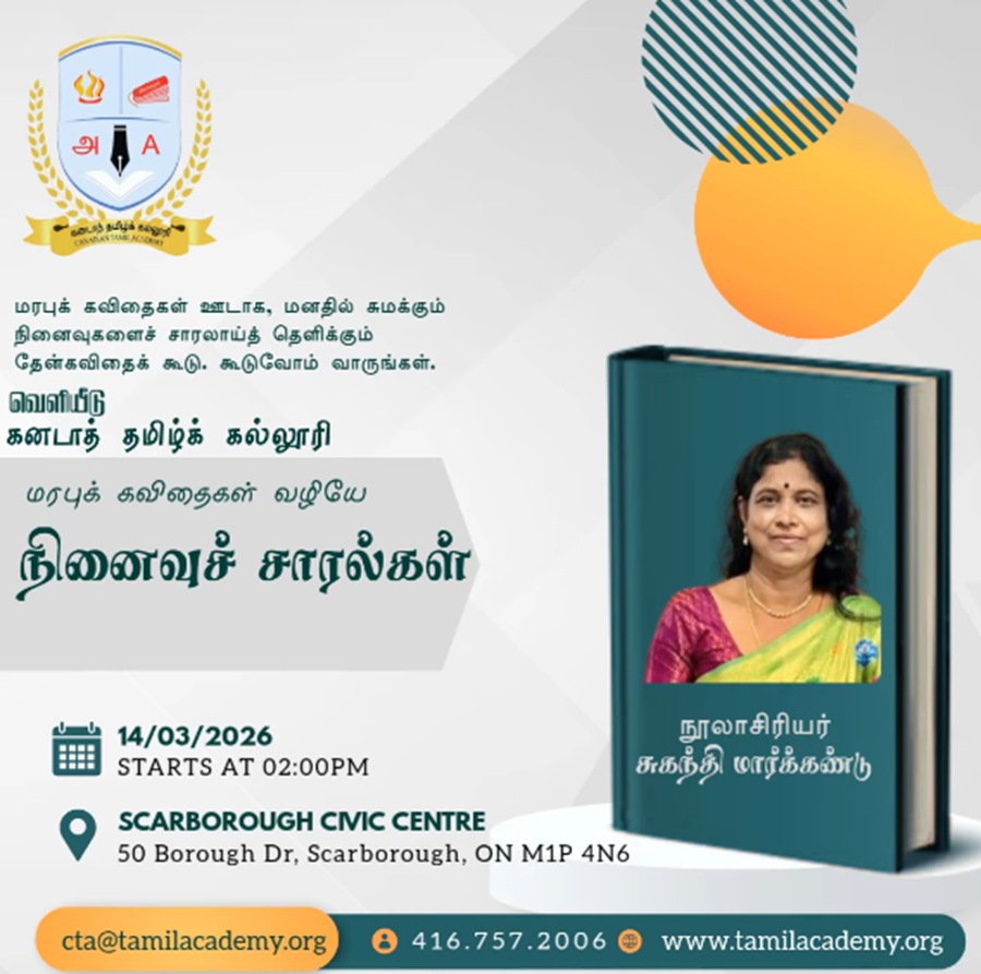 If you have an event you’d like us to post, a suggestion on how we can make our calendar better, or any other question, please email us at info(at)torontotamil.com. You can also complete our online event submission form. We look forward to hearing from you!