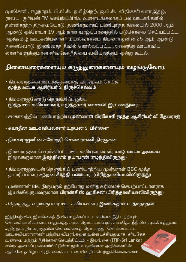 நிமலராஜனின் 25ம் ஆண்டு நினைவும் நீதிக்கான கூடலும்