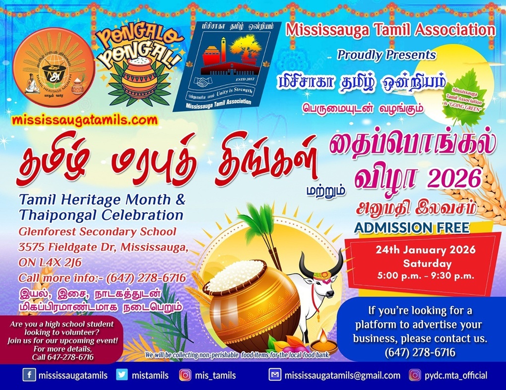 மிசிசாகா தமிழ் ஒன்றியம் வழங்கும் பொங்கல் விழா 2026