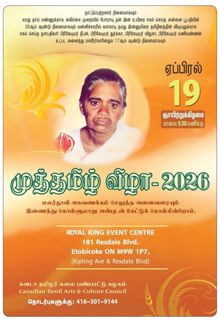 If you have an event you’d like us to post, a suggestion on how we can make our calendar better, or any other question, please email us at info(at)torontotamil.com. You can also complete our online event submission form. We look forward to hearing from you!