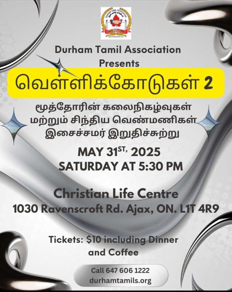 If you have an event you’d like us to post, a suggestion on how we can make our calendar better, or any other question, please email us at info(at)torontotamil.com. You can also complete our online event submission form. We look forward to hearing from you!