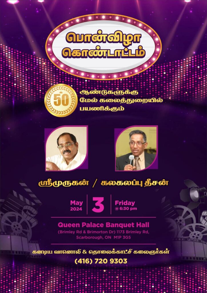If you have an event you’d like us to post, a suggestion on how we can make our calendar better, or any other question, please email us at info(at)torontotamil.com. You can also complete our online event submission form. We look forward to hearing from you!