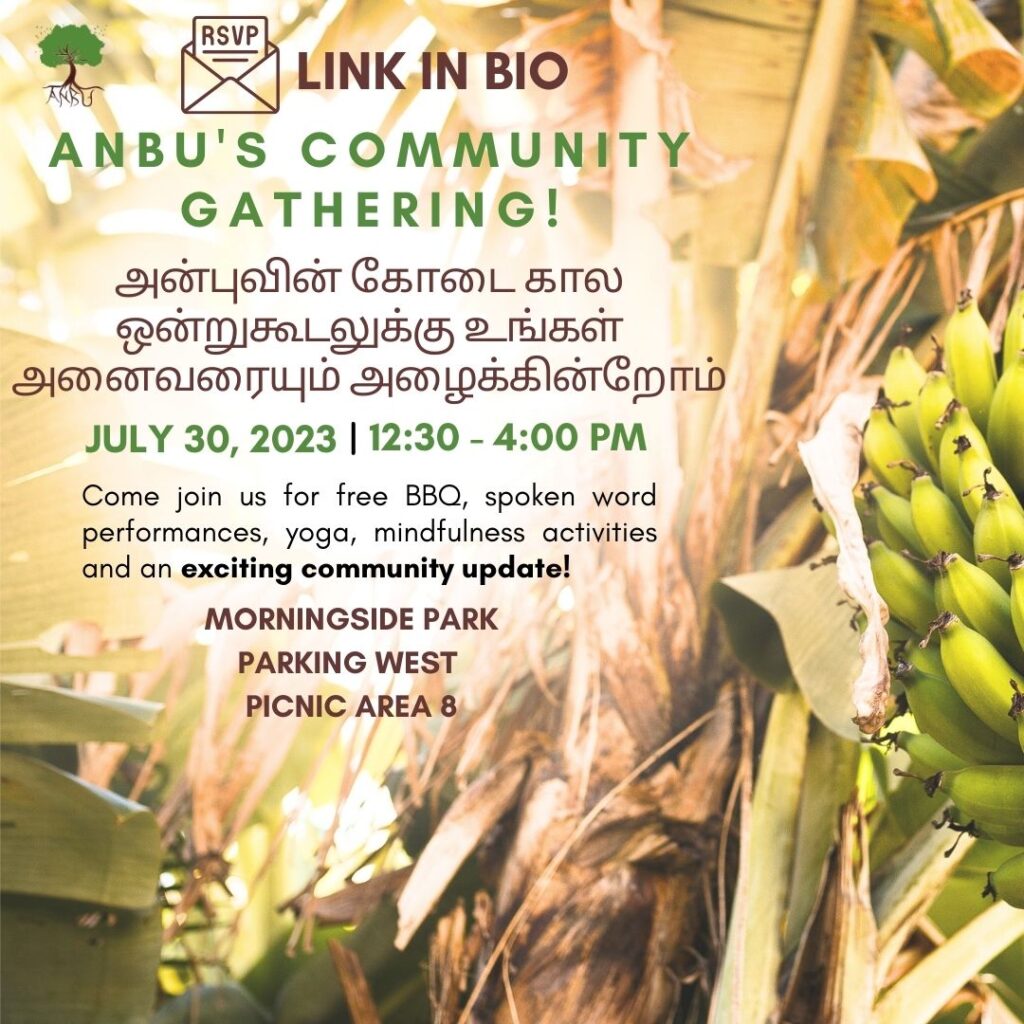 Our event will take place next to Parking West in Picnic Area 8. After a three-year hiatus of hosting in person events due to COVID-19 restrictions, we are proud to reintroduce A.N.B.U. and our purpose in the Tamil community and officially launch our exciting new project!