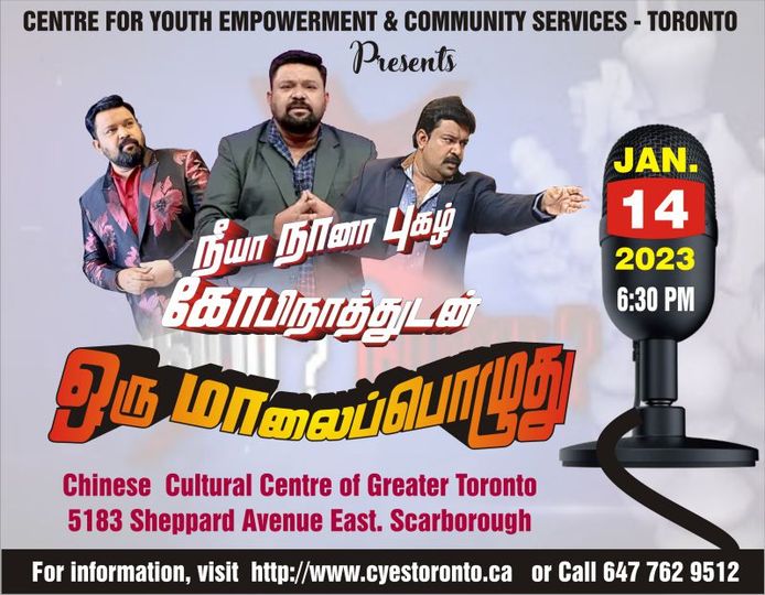 If you have an event you’d like us to post, a suggestion on how we can make our calendar better, or any other question, please email us at info(at)torontotamil.com. You can also complete our online event submission form. We look forward to hearing from you!