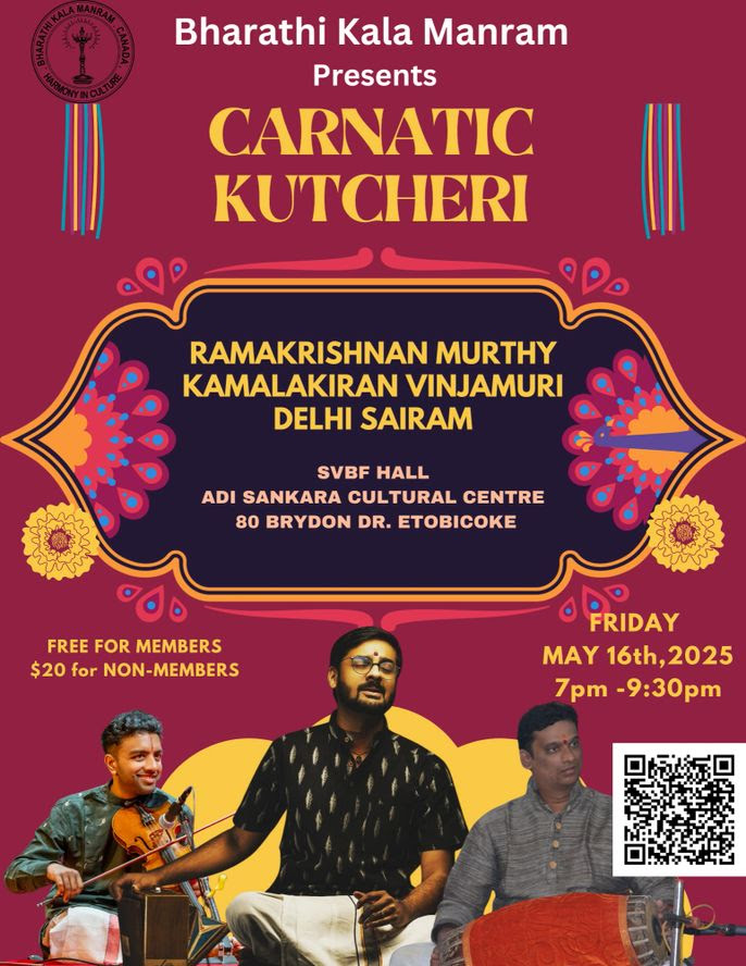 If you have an event you’d like us to post, a suggestion on how we can make our calendar better, or any other question, please email us at info(at)torontotamil.com. You can also complete our online event submission form. We look forward to hearing from you!