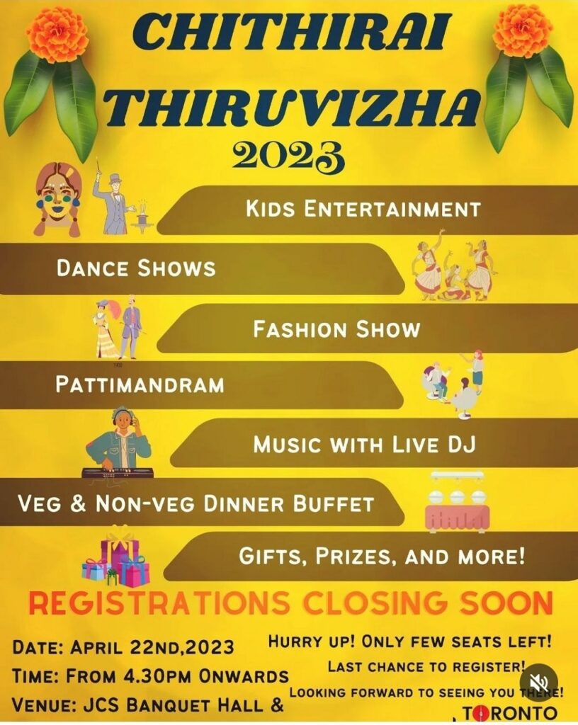 If you have an event you’d like us to post, a suggestion on how we can make our calendar better, or any other question, please email us at info(at)torontotamil.com. You can also complete our online event submission form. We look forward to hearing from you!