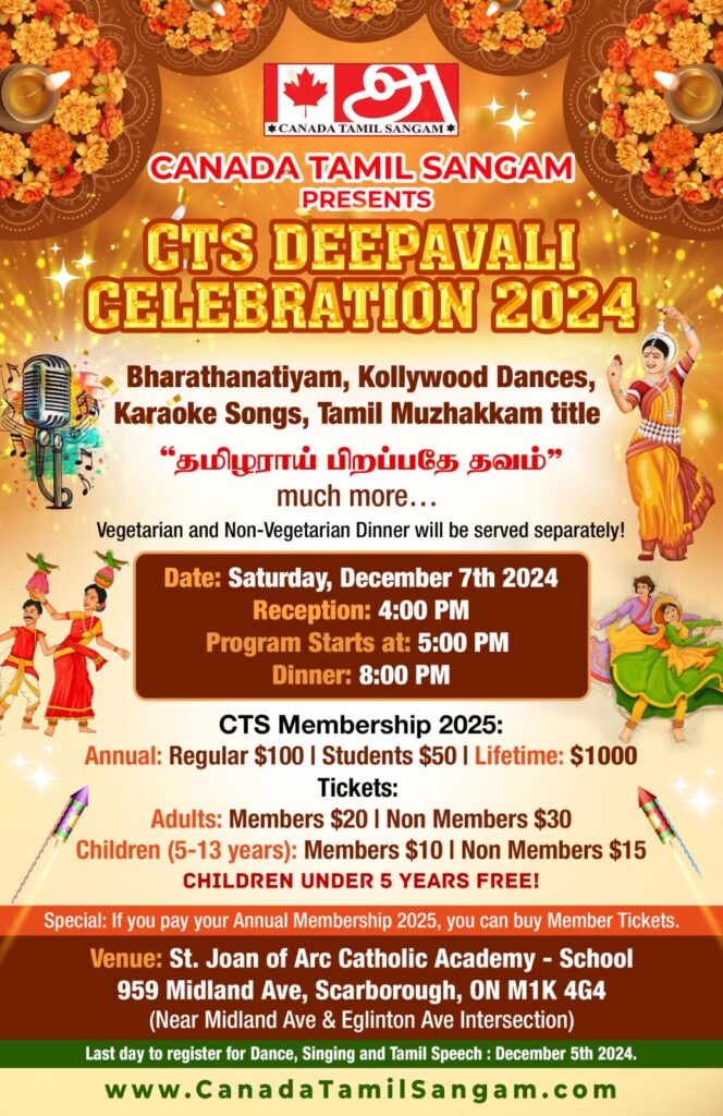 If you have an event you’d like us to post, a suggestion on how we can make our calendar better, or any other question, please email us at info(at)torontotamil.com. You can also complete our online event submission form. We look forward to hearing from you!