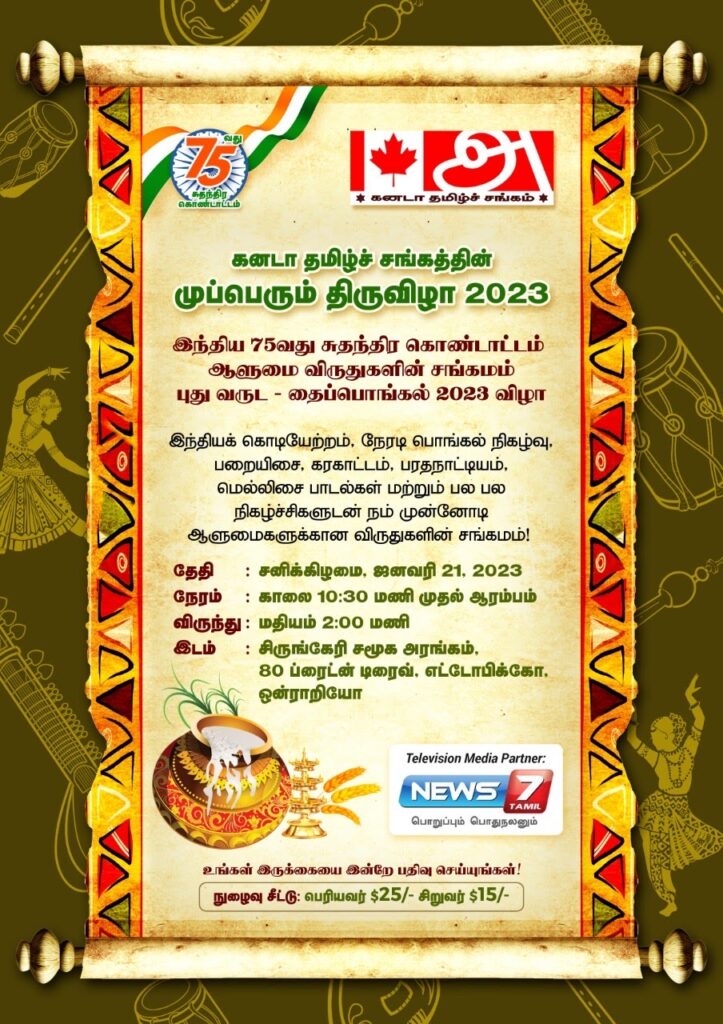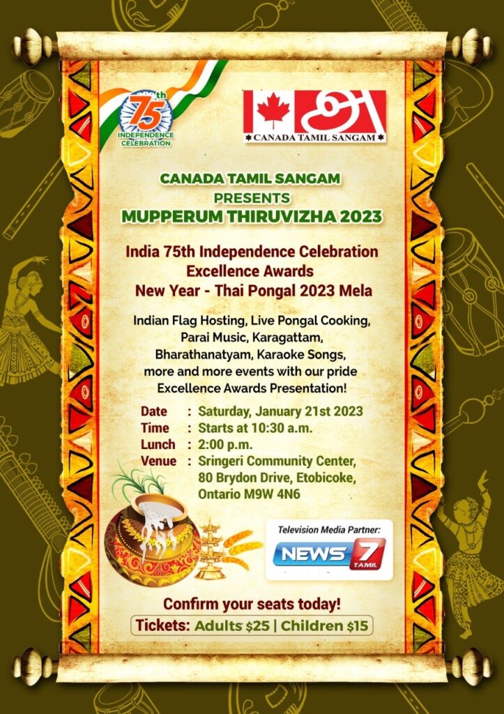 If you have an event you’d like us to post, a suggestion on how we can make our calendar better, or any other question, please email us at info(at)torontotamil.com. You can also complete our online event submission form. We look forward to hearing from you!