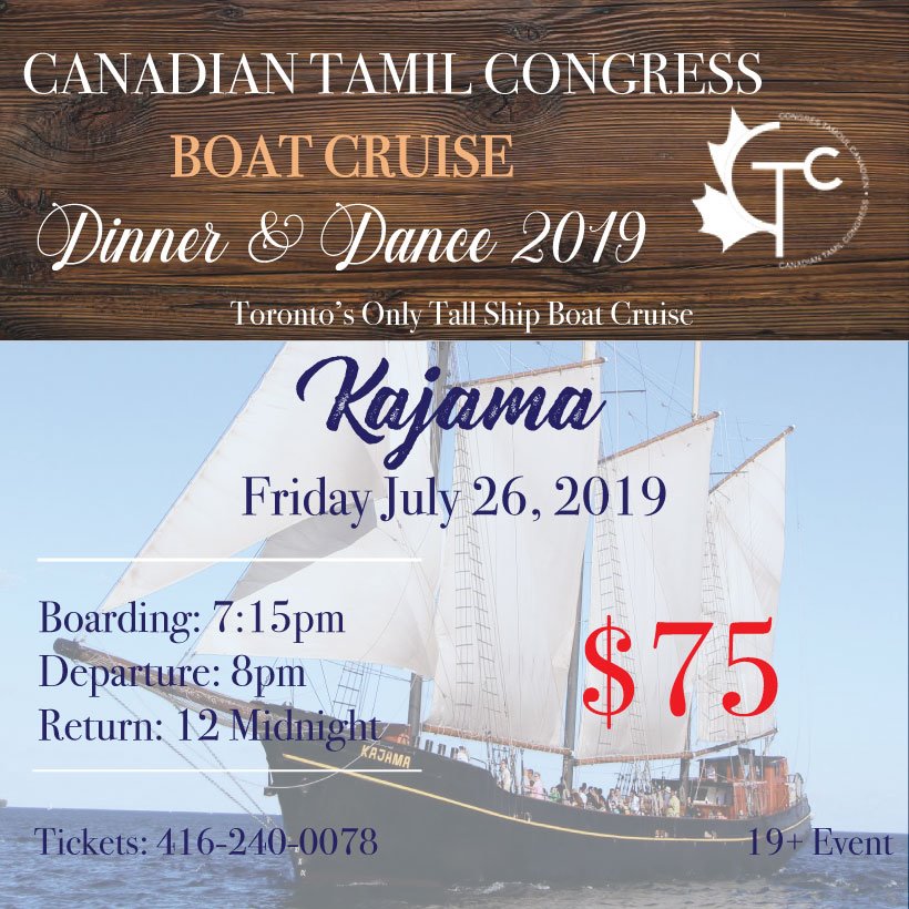 The Canadian Tamil Congress would like to invite you to our 3rd DINNER & DANCE BOAT CRUISE.