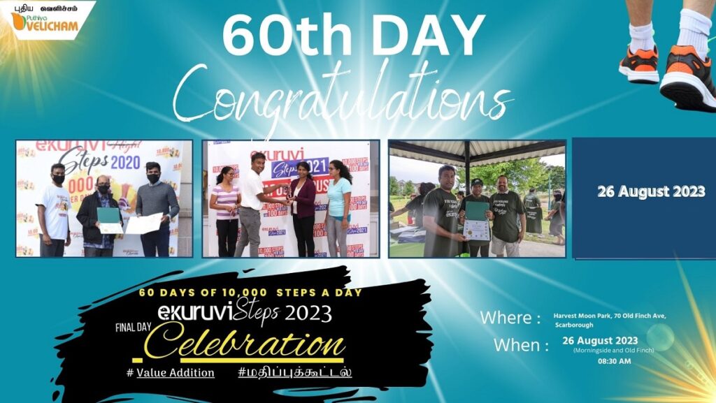 This year’s eKuruvi Steps 2023 – Value Addition commenced on June 25 , hundreds of Canadians and worldwide joined us for the Walk and full-filling the daily target of 10,000 steps.