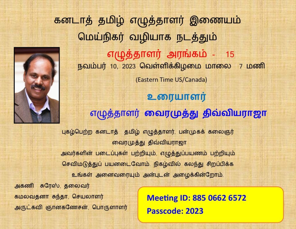 Tamil Writers’ Association of Canada is inviting you to a scheduled Zoom meeting.
