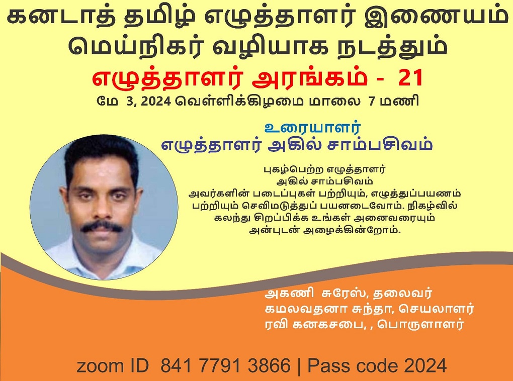Tamil Writers’ Association of Canada is inviting you to a scheduled Zoom meeting.
