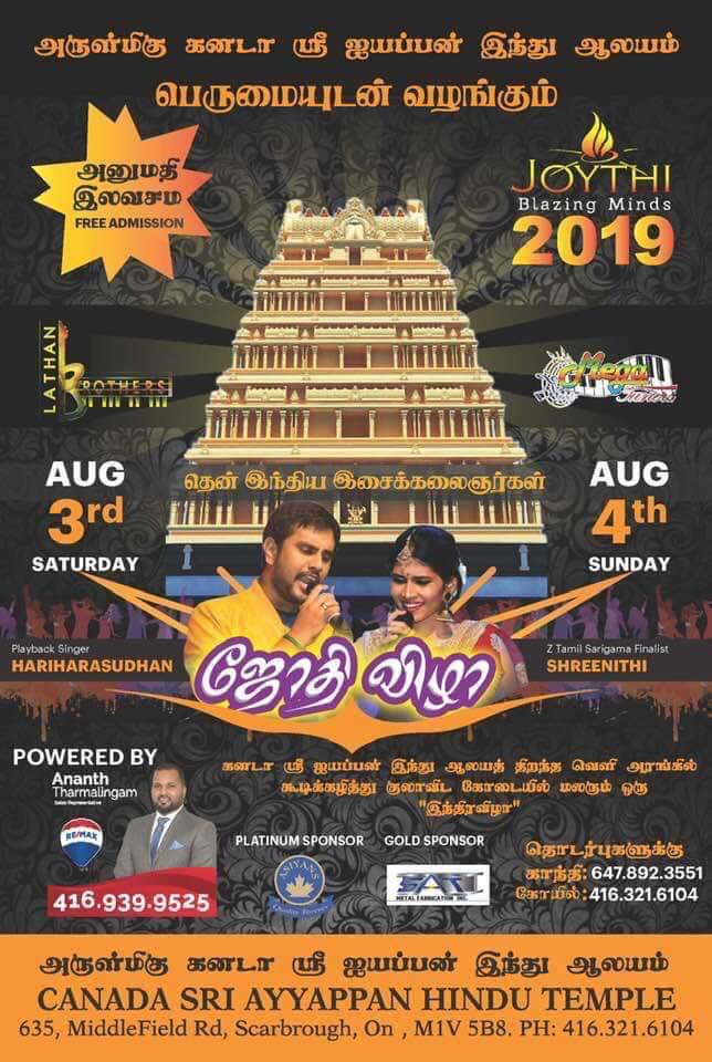 Joythi 2019 with playback singer Hariharasuthan and singer Srinidhi with our Canadian singers.