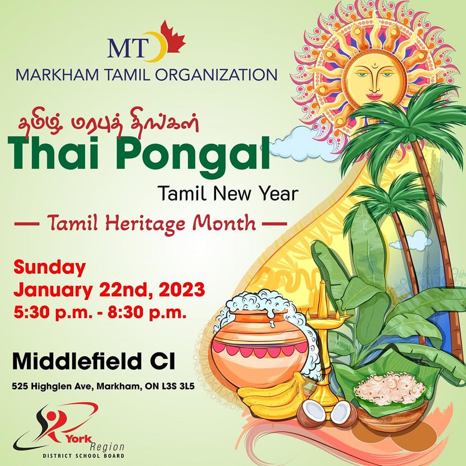 Markham Tamil Organization invites you all to join us in celebrating our rich Thamil heritage culture and traditions. Please join us and enjoy the evening with your family and friends.
