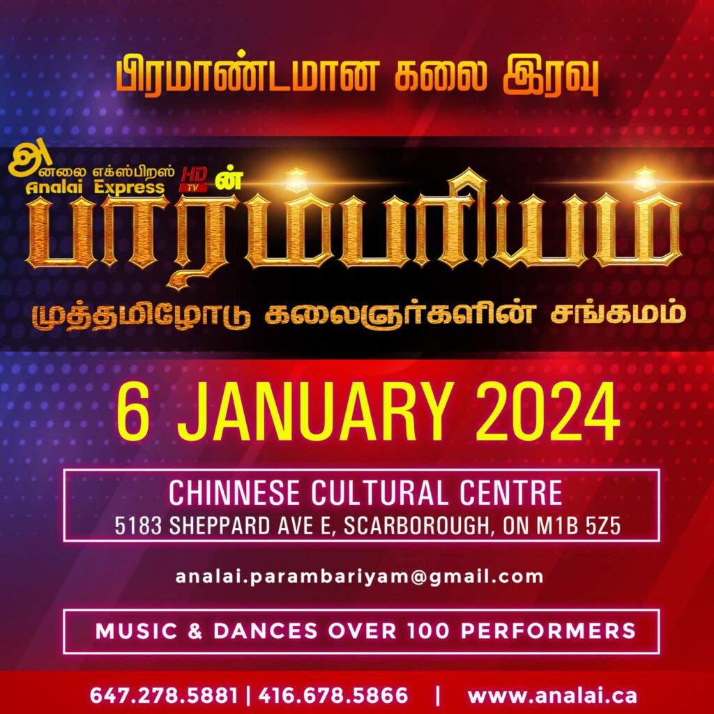 If you have an event you’d like us to post, a suggestion on how we can make our calendar better, or any other question, please email us at info(at)torontotamil.com. You can also complete our online event submission form. We look forward to hearing from you!