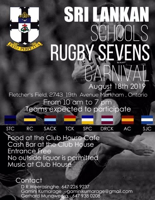 Sri Lanka Schools Rugby 7’s Carnival on 18th Aug 2019 @ Markham Ontario Canada.