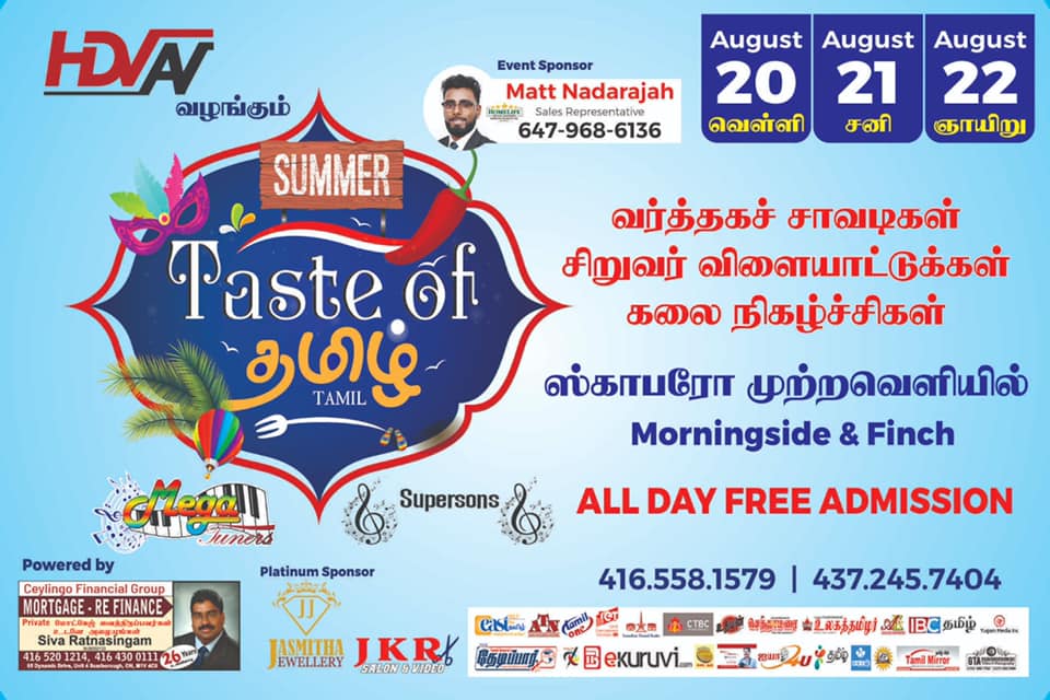 If you have an event you’d like us to post, a suggestion on how we can make our calendar better, or any other question, please email us at info(at)torontotamil.com. You can also complete our online event submission form. We look forward to hearing from you!