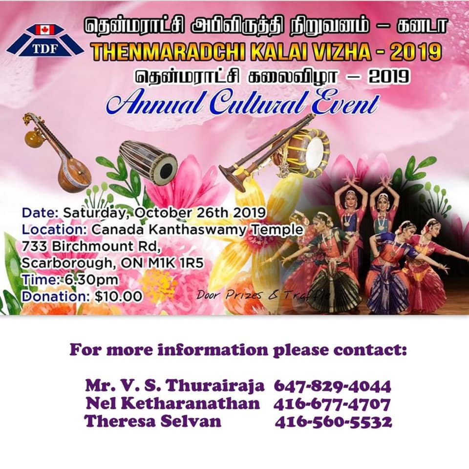 If you have an event you’d like us to post, a suggestion on how we can make our calendar better, or any other question, please email us at info(at)torontotamil.com. You can also complete our online event submission form. We look forward to hearing from you!