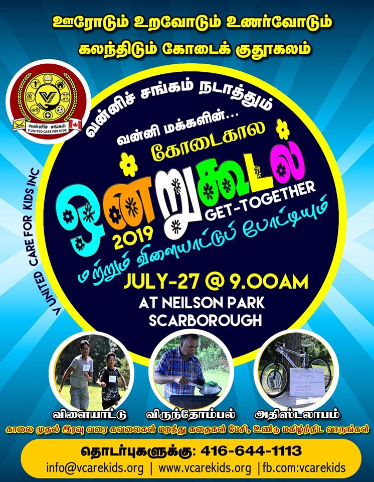 வன்னி மக்களின் வருடாந்த கோடைகால ஒன்றுகூடலும் விளையாட்டுப்போட்டியும் எதிர்வரும் ஜூலை 27 சனிக்கிழமை காலை 9 மணி முதல் முன்னிரவு 8 மணி வரையிலும் நடைபெற உள்ளது. வழமைபோல் காலை மதியம் இரவு உணவுகளுடன் உணர்வுகளை உணர்வுகளைப் பகிர்ந்து ஊரின் நினைவுகளை மீட்டிட வாருங்கள்